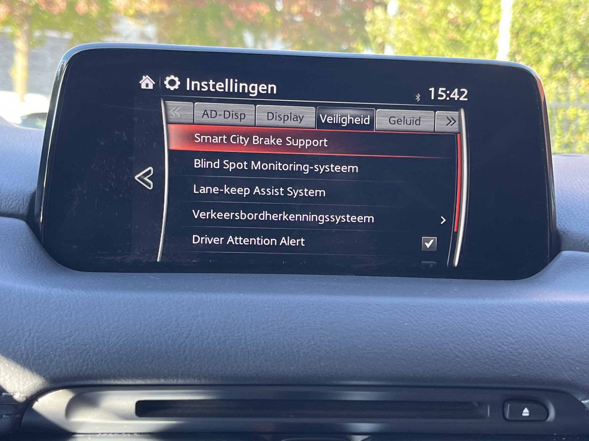 De nieuwste veiligheidssystemen komen in deze Mazda CX-5 samen. In het instrumentarium ziet u tijdens de rit ook de belangrijkste verkeersborden aangegeven, die de auto automatisch voor u leest. Het Lane-keeping systeem zorgt dat u mooi binnen de lijntjes blijft. Ongemerkt buiten de rijstrook komen is er niet meer bij. Forward collision warning waarschuwt bij een dreigende aanrijding met een voorligger. Dankzij veiligheidsvoorzieningen als head-up display, dodehoekdetectie, hill hold functie, brake assist, vermoeidheidsherkenning en bandenspanningcontrolesysteem, bent u steeds veilig onderweg.