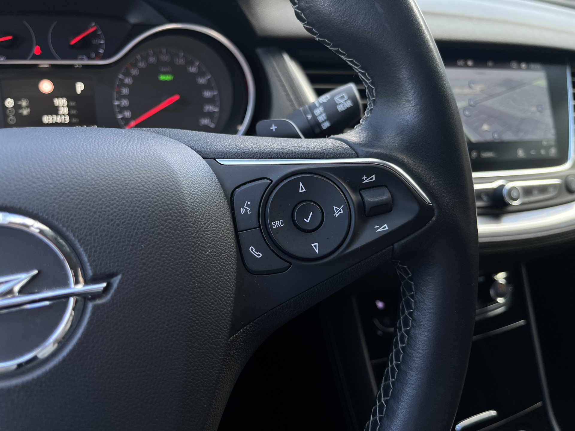 De 360 graden camera wordt mogelijk gemaakt door vier camera’s die tezamen werken om zo een uitgebreid zicht te bieden, wat van grote waarde is bij het navigeren door smalle straatjes en parkeerplekken. Connected Services voegt nog meer comfort en veiligheid toe aan deze auto. Deze Opel is voorzien van spraakbediening voor het navigatiesysteem en voor het audiosysteem met DAB-ontvangst. Maar u kunt ook de knoppen op het stuur gebruiken. Met de automatische airconditioning selecteert u de gewenste temperatuur. Het systeem doet de rest. Boem is ho? Niet bij deze Opel Grandland X. De piepjes van de parkeersensoren waarschuwen u op tijd voor obstakels. De Opel is standaard voorzien van: lederen sportstuur, regensensor, cruise control, keyless entry, automatisch dimmende binnenspiegel en isofix-aansluiting.