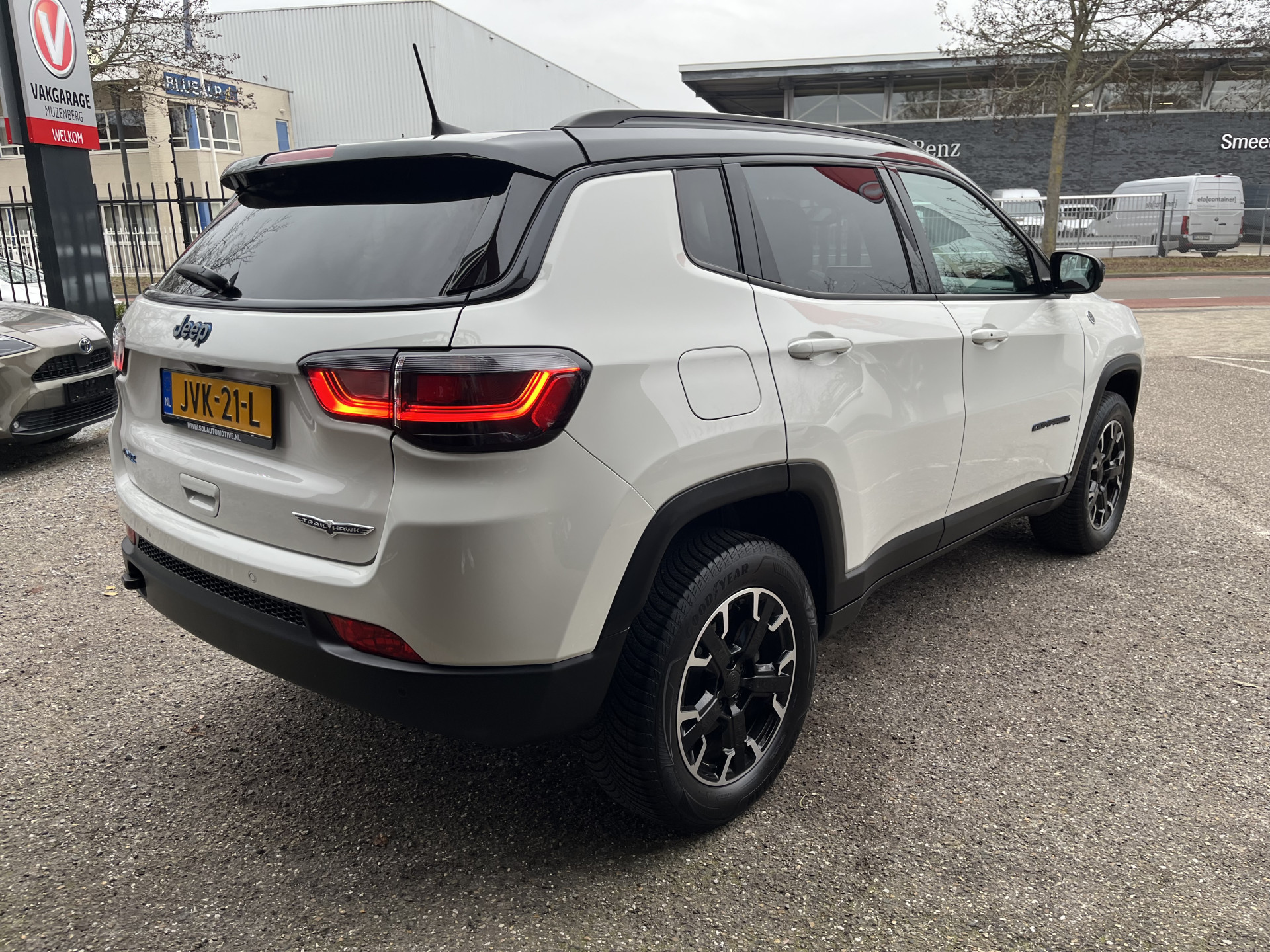 Zoals u mag verwachten van deze Jeep Compass is hij uitgerust met een reeks aan actieve veiligheidssystemen. De actuele snelheidslimiet, een inhaalverbod en andere verkeersborden; de verkeersborddetectie ondersteunt u tijdens elke rit. Het Lane-keeping systeem zorgt voor een automatisch constante positie binnen de rijstrook. Afdwalen is uitgesloten. Forward collision warning is een automatisch waarschuwingssysteem dat direct in werking treedt bij gevaar voor een kop-staartbotsing. Met voorzieningen als hill hold functie, vermoeidheidsherkenning, autonoom remsysteem en bandenspanningcontrolesysteem, bent u altijd veilig onderweg.