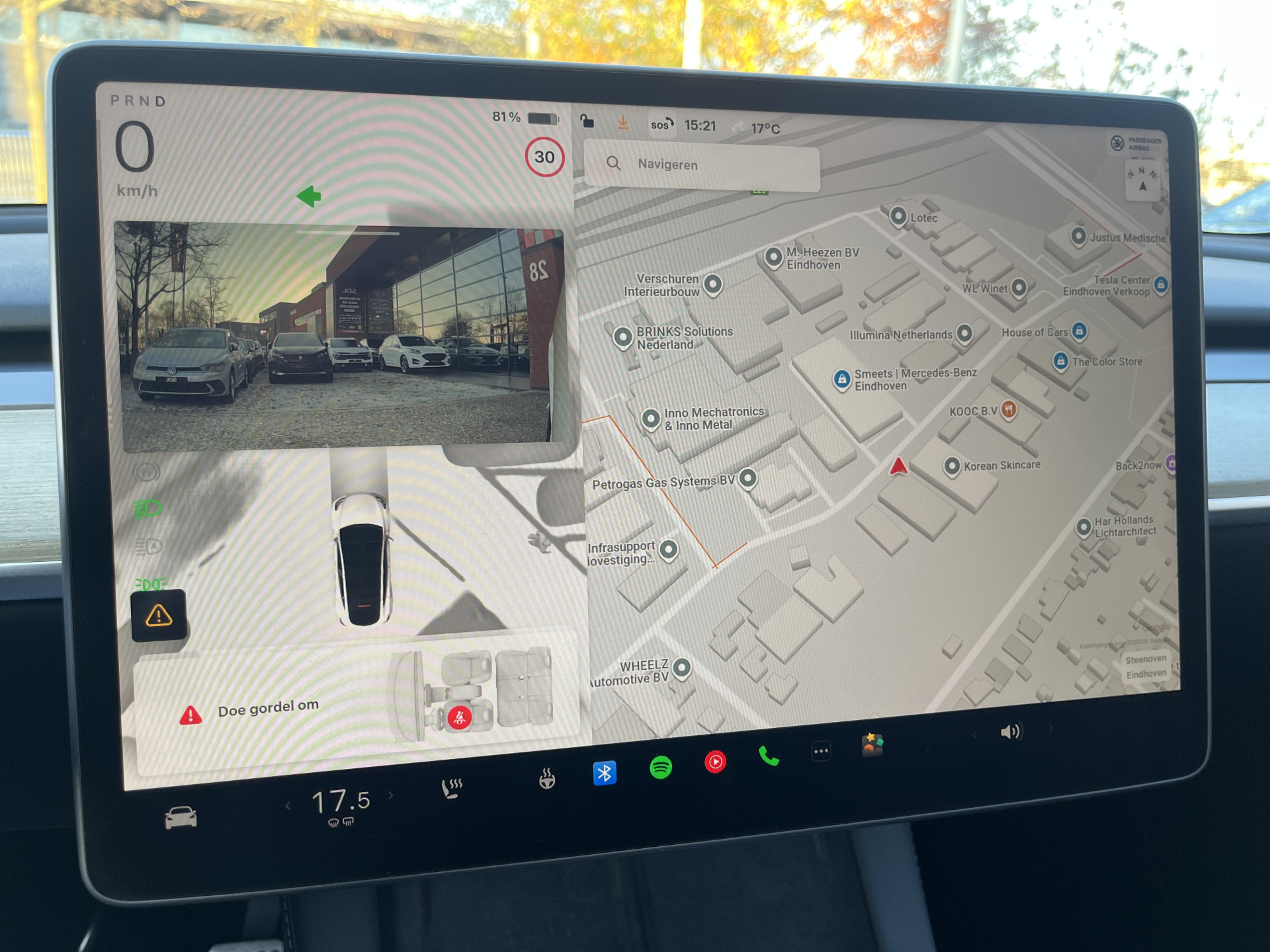 De radio harder of zachter zetten of iemand uit uw contactenlijst bellen. Dankzij de spraakbediening doet u dit allemaal met uw stem. Uw smartphone wordt een dashboard, met alle functies in beeld. Dankzij Connected Services en de speciale app. Onder alle omstandigheden een volmaakt geluid onderweg: het high performance audiosysteem zorgt ervoor. Er is geen bestemming die het aanwezige full map navigatiesysteem niet kent. Dat rijdt lekker! In een auto als deze kunt u niet zonder electronic climate control, zodat de temperatuur altijd goed is. De uitrusting van deze Tesla is met keyless entry en automatisch dimmende buitenspiegels behoorlijk compleet.