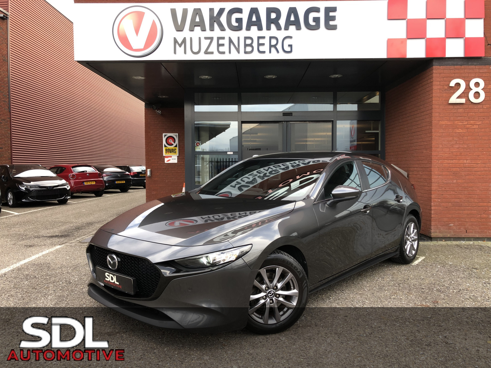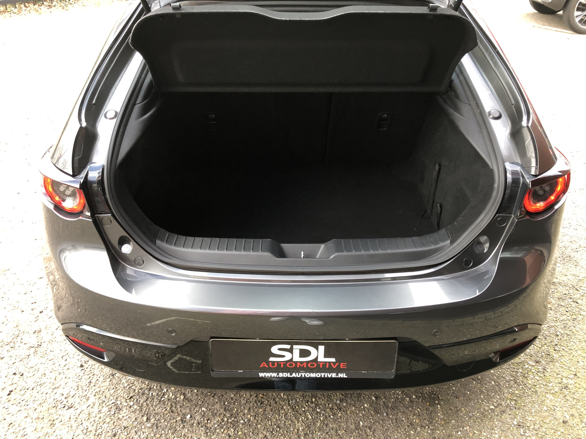 Zoals u mag verwachten van deze Mazda 3 is hij uitgerust met een reeks aan actieve veiligheidssystemen. De actuele snelheidslimiet, een inhaalverbod en andere verkeersborden; de verkeersborddetectie ondersteunt u tijdens elke rit. Een camera houdt de juiste koers binnen de rijstrook in de gaten en het Lane-keeping systeem corrigeert bij afwijkingen. Voertuigen of personen buiten uw zicht kunnen gevaar opleveren. De actieve dodehoekdetectie waarschuwt direct. Verder is deze auto uitgerust met head-up display, forward collision warning system, hill hold functie, brake assist, vermoeidheidsherkenning en bandenspanningcontrolesysteem.